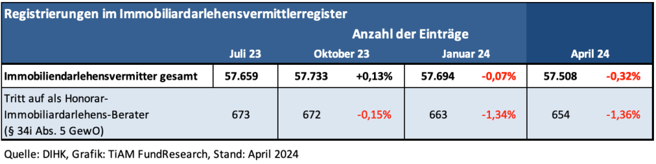 Die Zahl der Immobiliardarlehensvermittler ist laut DIHK-zuletzt wieder gesunken. Der Grund dafür dürfte – wenig überraschend – das schwache Marktumfeld sein. Wobei auch hier zu beobachten ist, dass die Zahl der Berater, die als Honorar-Immobiliardarlehensberater auftritt, bereits länger rückläufig ist.