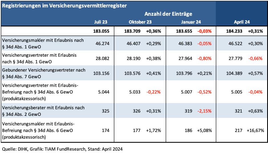 Bemerkenswert ist, dass die Zahl der Versicherungsmakler mit Erlaubnis-Befreiung nach § 34d Absatz 6 GewO nach dem Scheitern des Provisionsverbots sogar um über 16 Prozent gestiegen ist. Hintergrund: Gemeint sind mit dieser Typbezeichnung Versicherungsvermittler, die im Auftrag eines Versicherungsunternehmens oder Versicherungsvermittlers mit Erlaubnis tätig sind und eine Vermögensschaden-Haftpflichtversicherung haben. Diese Gruppe hätte ihre Tätigkeiten einstellen müssen, falls ein komplettes Provisionsverbot beschlossen worden wäre.