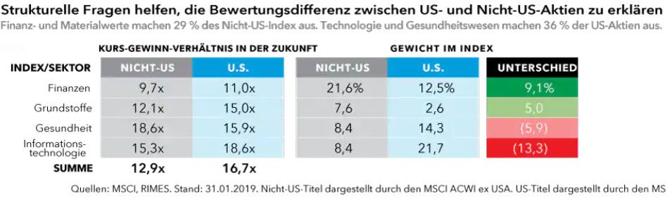 Rob Lovelace: Es hat viel mit den Bestandteilen zu tun, aus denen sich die Indizes zusammensetzen. In Europa beispielsweise sind viele der größten Unternehmen in den europäischen Indizes Finanzdienstleister, insbesondere Banken. Banken haben sich in den letzten Jahren nicht gut entwickelt, da das schwache Wirtschaftswachstum in der Eurozone und die negativen Zinssätze die Rentabilität beeinträchtigt haben. Im Gegensatz dazu sind viele der größten Bestandteile der US-Indizes Technologie- oder E-Commerce-Unternehmen wie Amazon, Apple, Microsoft und Alphabet, die Muttergesellschaft von Google. Wie wir alle wissen, haben sie sich in den letzten Jahren ziemlich gut geschlagen.