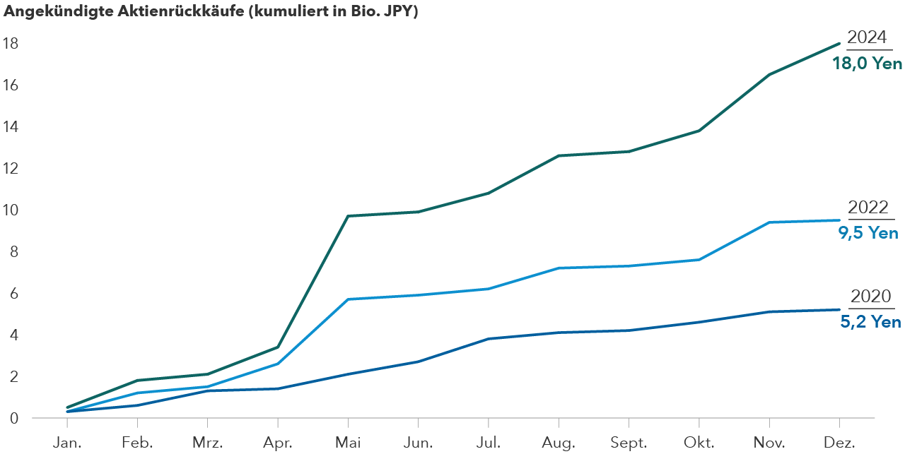 Außerdem wird in Japan die Corporate Governance wieder wichtiger. Bei den rentabilitätssteigernden Reformen ist noch Luft nach oben, aber seit 2023 sorgen sie für eine stabile Wertentwicklung des MSCI Japan Index.