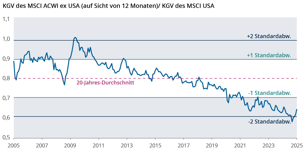 Quellen: Capital Group, FactSet, MSCI Stand 31. März 2025. NTM: auf Sicht von zwölf Monaten. 1 KGV: Kurs-Gewinn-Verhältnis.