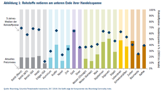 Die Fundamentaldaten der Rohstoffmärkte haben sich ebenfalls verbessert, vor allem auf der Angebotsseite. Ein Merkmal der ausgedehnten Niedrigpreisphase an den Rohstoffmärkten waren die erheblichen Kürzungen bei den Anlageinvestitionen, vor allem im Energie- und Minensektor. Dadurch rückt der Zeitpunkt näher, an dem die globale Nachfrage das Angebot übersteigt. Gleichzeitig macht dies eine angebotsseitige Reaktion auf höhere Preise schwieriger.
