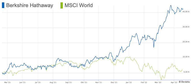 Investoren auf der Suche nach rentablen Anlagemöglichkeiten haben es also derzeit schwer, vor allem wenn sie dabei noch auf ausreichend gute Diversifikation achten wollen. Wer zum Beispiel in Sparpläne einzahlt, die in MSCI World Index-ETFs investieren, darf sich seit Jahresbeginn nur über kontinuierlich niedrigere Einstiegskurse freuen. Ganz anders sieht die Welt für Aktionäre von Berkshire Hathaway aus. Das von der Investorenlegende Warren Buffett gegründete Unternehmen startet seit Dezember vergangenen Jahres richtig durch. Offensichtlich hat der Altmeister des Value Investing Einiges richtig gemacht. Während der MSCI World Index seit Jahresbeginn in der Verlustzone rangiert, hat der Wert der Berkshire-Aktie in dieser Zeit mehr als 20 Prozent an Wert zugelegt.