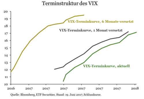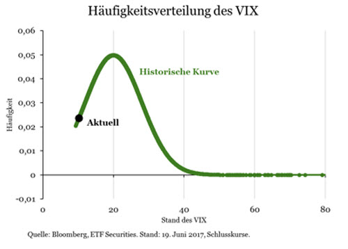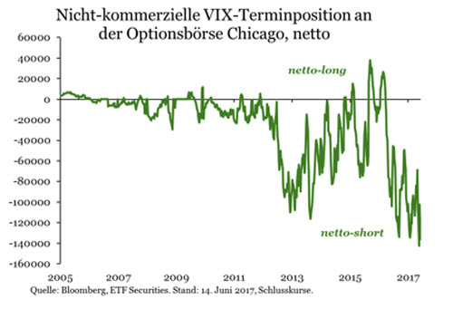 Die jüngsten Spitzen des VIX unterstreichen, dass Anleger, die den VIX shorten, durchaus Opfer ihrer Sorglosigkeit werden können. Ein gutes Beispiel hierfür ist der Anstieg am 17. Mai. Über Nacht explodierte der VIX von 10,6 um 46 Prozent auf 15,6. Grund waren Enthüllungen, dass Präsident Trump den ehemaligen FBI-Direktor Comey aufgefordert habe, die Untersuchungen über die russische Einmischung in den US-Wahlkampf einzustellen.