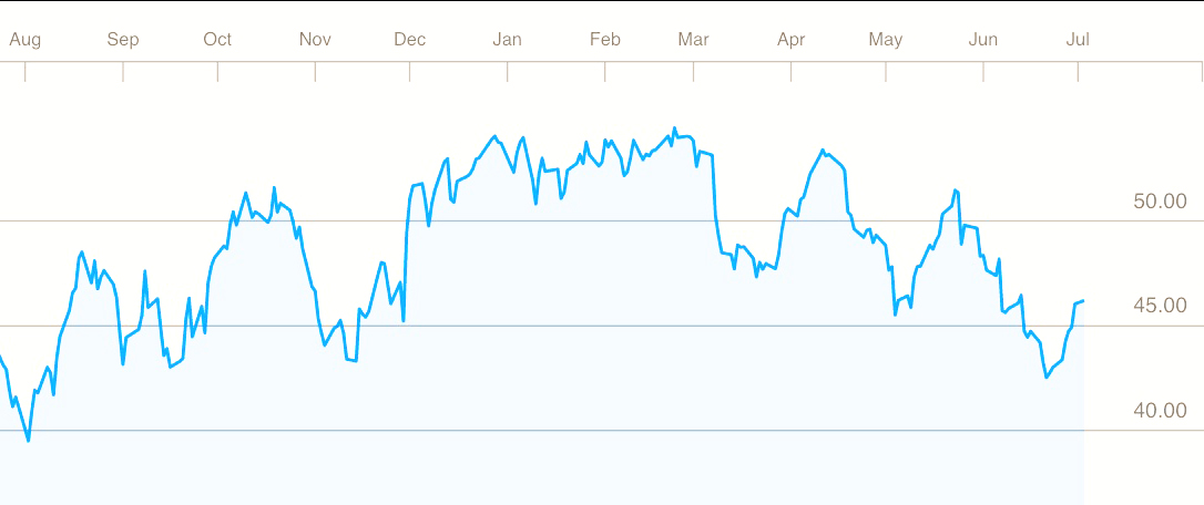 Trotz der Bemühungen der OPEC, den Ölpreis zu stabilisieren, liegt das Preisniveau weiterhin unter 50 US$ pro Barrel. Viele Produzenten, wie beispielsweise Saudi Arabien, liefern zur Zeit unter der Gewinnschwelle.