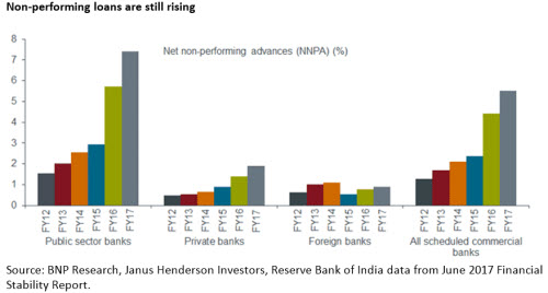 Source: BNP Research, Janus Henderson Investors, Reserve Bank of India data from June 2017 Financial Stability Report.