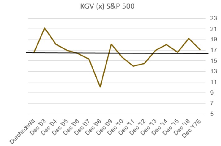 Qualitätsunternehmen, die eine starke Wettbewerbspositionen, gute Bilanzen, eine hohe Profitabilität haben und entsprechende Cash-Flows generieren, dürfen teurer sein. Mit einem durchschnittlichen Forward -KGV von 17,1 (15-Jahres Durchschnitt: 16,5) und KBV von 2,8 (15-Jahres Durchschnitt: 2,6) sind US Unternehmen im relativen Vergleich derzeit sicherlich schon gut bewertet, auch wenn sich dies im langfristigen historischen Vergleich wieder relativiert: