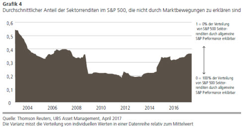 Die Korrelationen in und zwischen den Aktienmärkten sind seit den US-Wahlen stark zurückgegangen. Angesichts global hoher politischer Unsicherheit erweitert sich das Spektrum möglicher Wachstums-, Inflations- und Gewinnszenarien In diesem Umfeld erwarten wir anhaltend niedrige Korrelationen und eine verstärkte Renditestreuung. Die meisten aktiven Fonds haben signifikante Überrenditen erzielt, wenn die Marktstreuung am höchsten war.