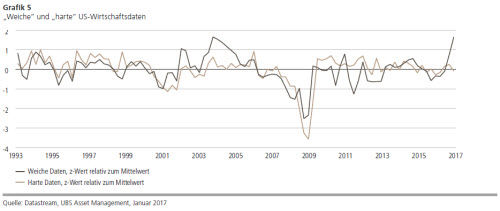 Die Aktienrally nach der US-Wahl wurde anfänglich von Donald Trumps eigener Wachstums-Agenda und dem Glauben der Investoren an ihren Nutzen für die Weltwirtschaft gestützt. Sie fand auch Unterstützung durch einen moderaten, aber weit verbreiteten Konjunkturauf-schwung in den globalen Industrielän-dern, der bereits vor der US-Wahl eingesetzt hatte, aber erst unmittelbar danach deutlich erkennbar wurde.