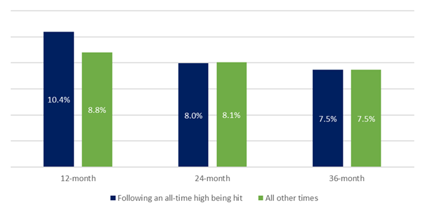 Abbildung 1: Bei Investitionen zum Zeitpunkt eines Allzeithochs erwiesen sich die Renditen höher im Vergleich zu sonst.