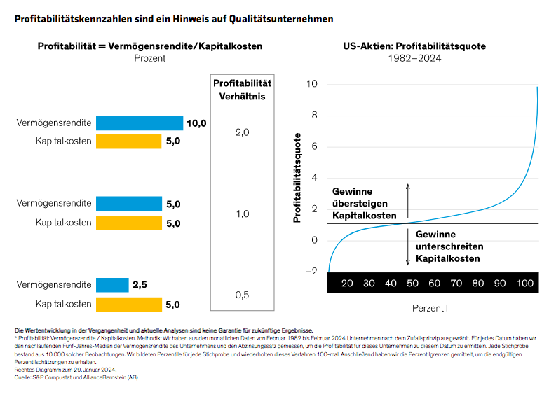 Wir sind der Meinung, dass aktive Anleger in Zeiten heißer und kalter Märkte nach profitablen Unternehmen suchen müssen, die sich durch eine hohe Qualität auszeichnen, und zwar in allen Sektoren und Branchen. Sich auf diese Attribute zu konzentrieren und sich gleichzeitig von wirtschaftlichen Gewinnen und Profitabilitätskennzahlen leiten zu lassen, ist ein hervorragendes Rezept, um das Ertragspotenzial von Unternehmen mit wirklich anhaltender Wachstumskraft zu erfassen, die dynamische Marktbedingungen überstehen.