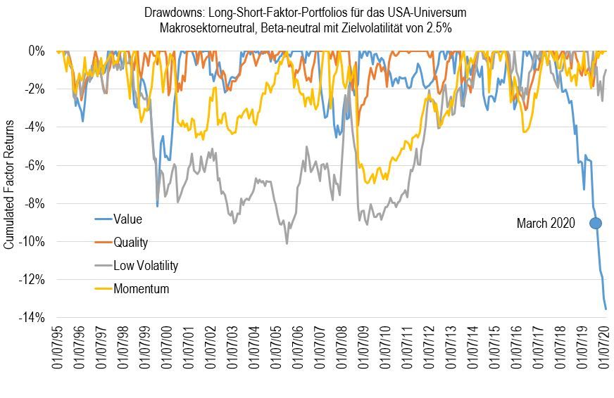 Diagramm 2: Die Underperformance des Faktors Value war 2020 so stark wie nie zuvor