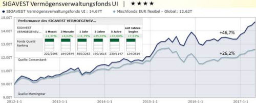 Christian Mallek, der mit seinem Team den SIGAVEST Vermögensverwaltungsfonds UI (WKN A0MZ31) berät, ist von der Arbeit der beiden Fondsmanager überzeugt. Hatte er bereits frühzeitig in den bereits geschlossenen Vorgängerfonds investiert, so baute er nun auch bei dem Nachfolgeprodukt in der kostengünstigeren Seed-Money-Tranche eine nennenswerte Position auf. Im SIGAVEST Vermögensverwaltungsfonds UI sorgen aktuell 32 Strategien erfolgreicher Manager für ein stabiles Rendite-/Risikoverhältnis.