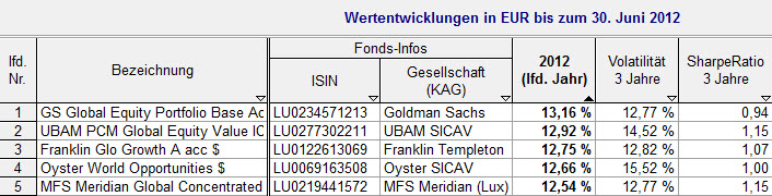 Internationale Aktienfonds: Die fünf Top-Performer im ersten Halbjahr 2012