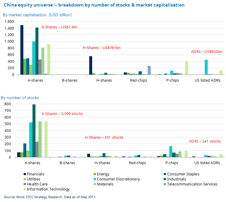 From the early days of investing in A-shares, via the Qualified Foreign Institutional Investor (QFII) programme, to the more recent Shanghai-/Shenzhen-Hong Kong Stock Connects, access for foreign investors to China’s sizeable US$ 7.4 trillion A-shares market has continued to advance. The A-shares universe itself, both by number of listed stocks and market capitalisation, dwarfs those that are found offshore. This will allow investors to access a market that has some of China’s most innovative and fast-growing companies.