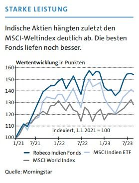 „Vom Wachstum in Indien profitieren, und das nach ökologischen und sozialen Kriterien“ – so lautet die Vorgabe beim Robeco Indian Equities, der wie der Schroders-Fonds nach Artikel 8 der EU-Offenlegungsverordnung klassifiziert ist. Verwaltet wird der Fonds vom Asia-Pacific-Equities-Investmentteam, das aus fünf Anlageexperten besteht. Das Team folgt einem konzentrierten Ansatz, der sich insbesondere an den Trends Binnenkonsum und Ausbau der Infrastruktur orientiert.