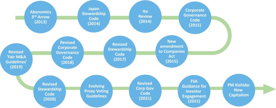 Eine koordinierte, staatlich geförderte Kampagne sollte die Unternehmen zu Verbesserungen bewegen (Abbildung 3). Dies erinnert ein wenig an Singapur vor 20 Jahren. Es handelte sich um ein umfangreiches institutionelles Projekt, das den rechtlichen Rahmen für die Unternehmen verbessern soll.