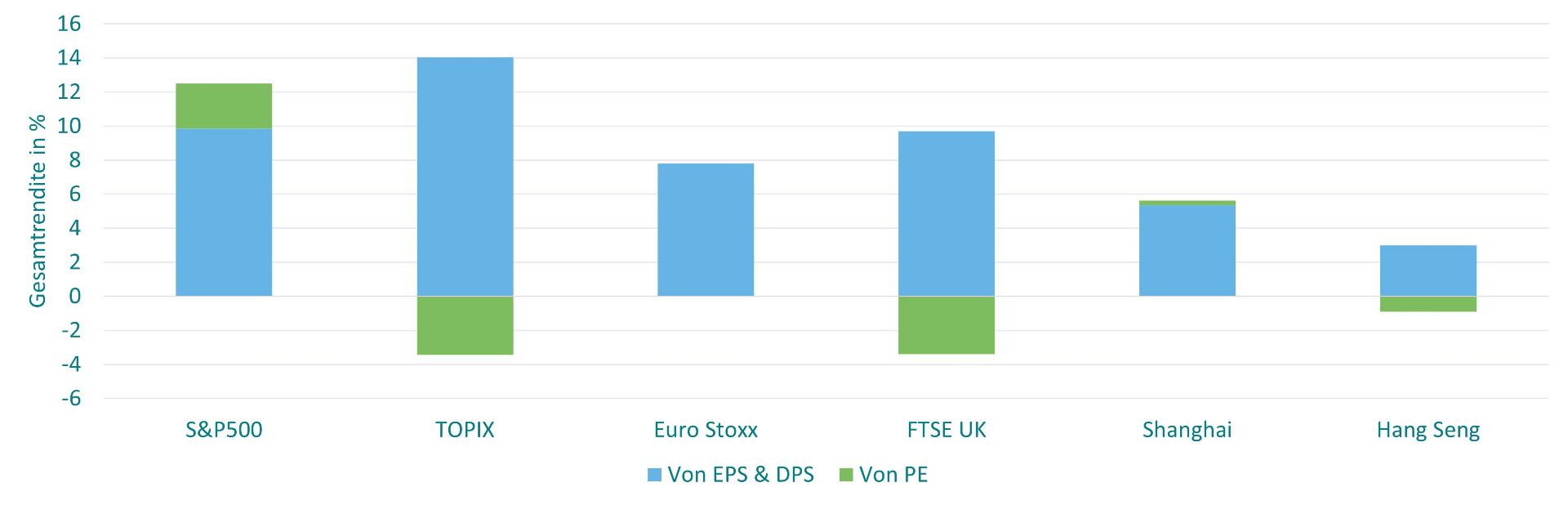 Bewertung vs. Fundamentaldaten: Beiträge zu den Gesamtrenditen wichtiger Aktienmärkte über 10 Jahre