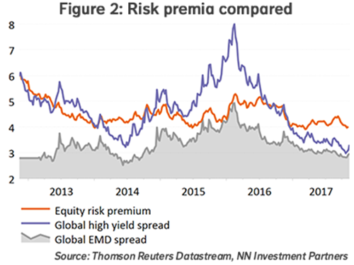 So what changed last week? A first observation is that the credit market was also confronted with chilly headwinds. Of course, this asset class has become vulnerable to bad news, given the very tight valuations leaving little room for disappointment. Doubts with regard to the US tax reform coupled with anxiety about future Fed policy led to outflows. Limited liquidity in this asset class may have exaggerated the move in spreads. At the same time being overweight credit is one of the most crowded trades, which makes it extra vulnerable to profit-taking. In view of the large increase in the financial leverage of US companies, contagion might pop up first in this area of the market. This is illustrated by the underperformance of highly leveraged versus lowly leveraged companies.