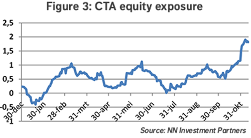A second observation is the widespread consensus that is currently dominating investor thinking. According to the latest investor survey, “goldilocks” is the key theme for 2018. The positioning has been evolving accordingly. Cash levels have dropped to the lowest level since October 2013 and the equity exposure is the highest since April 2015. Strangely enough, the number of investors that think that the equity market is overvalued has also risen to the highest level on record, comparable with the end of the previous century. We could say that the fear of missing out is currently a strong force driving investors reluctantly into equities. These are not strong hands and risk selling by the slightest headwind. This was also visible in the rising trend in equity exposure of CTA-investors, who are highly active and often momentum-driven.