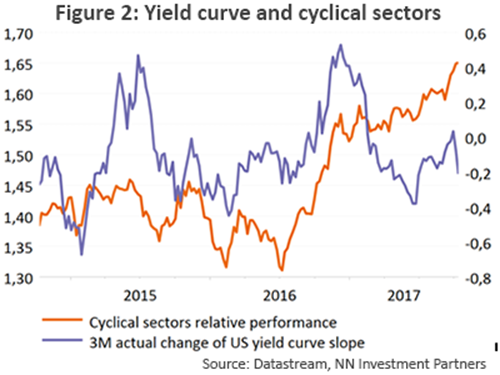 Figures 1 and 2 illustrate the dichotomy we are currently in. Macro data point towards an overweight in cyclical sectors, whereas the most recent shift in the US yield curve points towards a more defensive outcome.