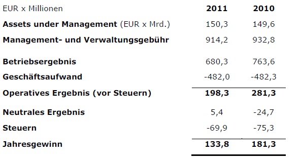 Durch starke Nettomittelzuflüsse in Höhe von 14,8 Milliarden Euro seit Jahresbeginn ist das verwaltete Vermögen auf 176 Milliarden Euro angewachsen (Stand: 29. Februar 2012). Im Bereich Responsible Investing (RI) konnten 2011 neue Mandate in Höhe von 1,1 Milliarden Euro gewonnen werden.