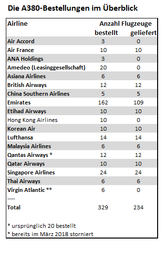 Flugzeuge bestellt, erst 109 wurden ausgeliefert. Allein Emirates ist damit für