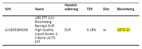 Für Anleger ist der HQLA Exchange Traded Fund von UBS ETF eine qualitativ hohe und liquide Alternative zu Cash, die das Potenzial birgt, Renditen zu steigern. Gerade aufgrund der hohen Qualität und des Liquiditätsprofil eignet sich der ETF auch zur Hinterlegung zusätzlicher Sicherheiten.
