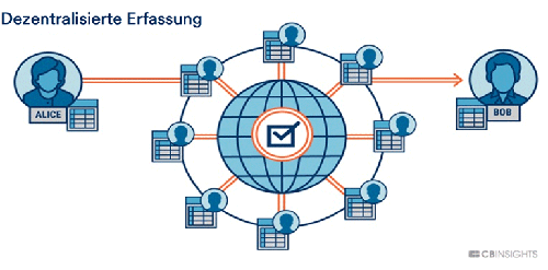 Distributed Ledger: Das dezentral geführte Kontobuch („Distributed Ledger“) ist auf viele Rechner verteilt. Es steht nicht im Eigentum oder unter der Kontrolle eines einzelnen Unternehmens oder sonstigen Organs. Die Langlebigkeit, Richtigkeit und Sicherheit eines Distributed Ledger hängt nicht von einer einzelnen Stelle ab. Stattdessen erfordert ein Distributed Ledger bzw. eine verteilte Datenbank einen öffentlichen Konsens unter den Beteiligten an der Verbuchung.
