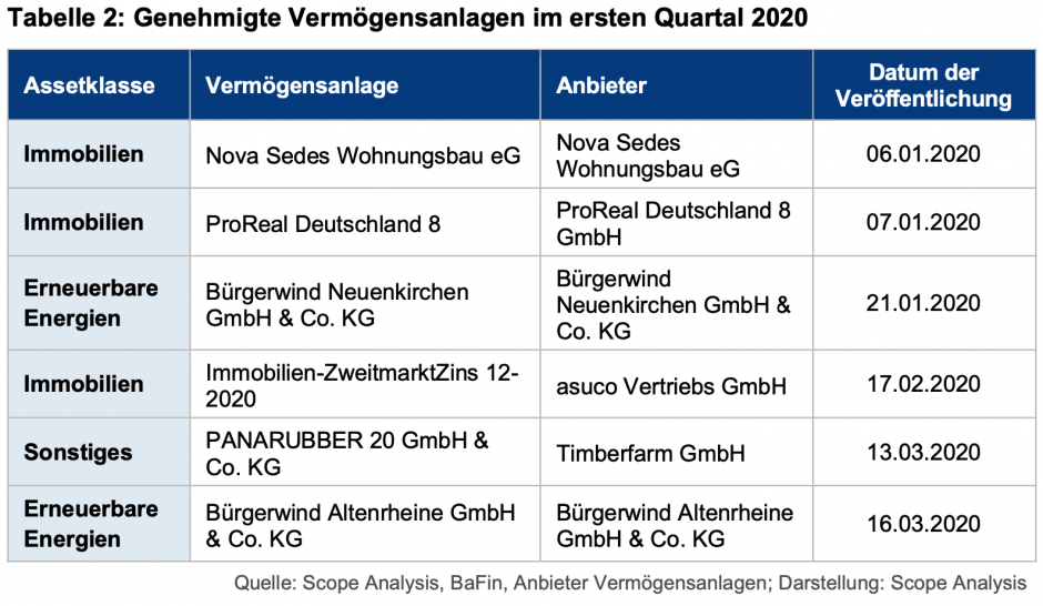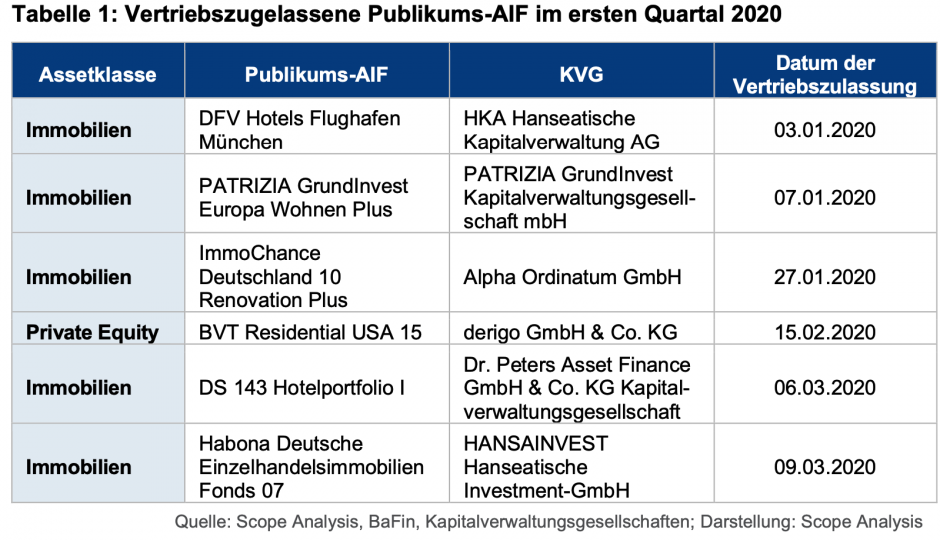 Das Jahr 2020 hat gar nicht so schlecht angefangen für die AIF-Branche. Im ersten Quartal 2020 wurden laut einer Statistik der Ratingagentur Scope sechs Publikums-AIF sowie sechs Vermögensanlagen von der BaFin zum Vertrieb zugelassen. Das prospektierte Eigenkapitalvolumen der sechs Projekte betrug insgesamt rund 204 Millionen Euro. Somit startete der Markt der geschlossenen Publikums-AIF (Alternative Investmentfonds) im Vergleich zum Vorjahreszeitraum schwungvoller ins Jahr 2020 als im Jahr zuvor.