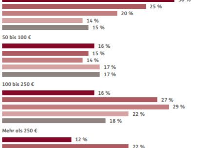 Immerhin jeder Fünfte legt nichts für sein Alter zurück. Besonders hoch ist die Zahl bei den unter 30-jährigen (26 %) sowie bei den über 50-jährigen (28 %). Bis zu 100 Euro legen knapp 40 % der Deutschen zurück. 100 bis 200 Euro sowie mehr als 250 Euro legen jeweils gut ein Fünftel der Deutschen fürs Alter beiseite.