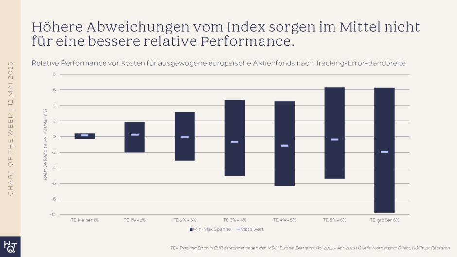 · „In der Tendenz gilt, dass je höher der Tracking Error ist, desto höher im Schnitt auch die Underperformance im Vergleich zur Benchmark ausfällt.“