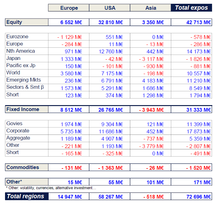 Unternehmensanleihen der Eurozone waren das beliebteste Teilsegment mit einem Plus von 3,2 Mrd. Euro gefolgt von US-Unternehmensanleihen (1,9 Mrd. Euro). Aus Floating Rate Notes (Anleihen mit variablem Zins) zogen Anleger 525 Mio. Euro ab. Bemerkenswert ist zudem, dass es Anzeichen für eine höhere Risikobereitschaft gab: So legten ETFs auf Hochzinsanleihen der Eurozone (281 Mio. Euro) und der USA (225. Mio. Euro) zu.-