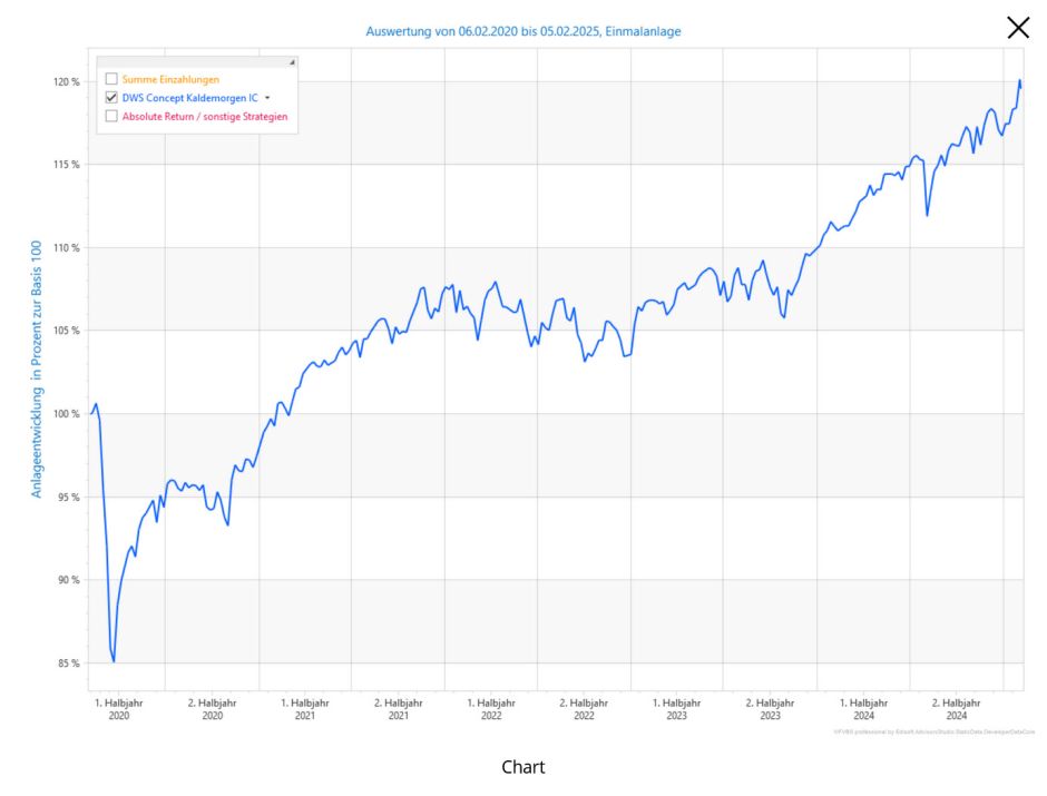 Der DWS Concept Kaldemorgen ist seit vielen Jahren eine sichere Bank für konservative Anleger. Renditewunder sind aufgrund der risikobewussten Strategie nicht zu erwarten. Dennoch lag die Performance 2024 bei sechs Prozent, im laufenden Jahr sind es knapp drei Prozent.