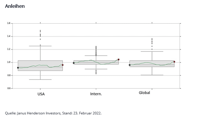 Heute sind sowohl die „Guten“ als auch die „Bösen“ am Zug. Der Krieg ist schrecklich und zerstört Leben. Die Zentralbanken sind sich dessen bewusst und werden bei der Erhöhung der Kapitalkosten sehr viel maßvoller vorgehen. Auch wenn dies ein entsetzlicher Preis ist, könnte eine maßvolle Straffung der Politik den Märkten in ansonsten unsicheren Zeiten die nötige Unterstützung bieten, insbesondere in Segmenten wie US-Aktien und globalen Anleihen, in denen eine aggressive Straffung bereits eingepreist war.
