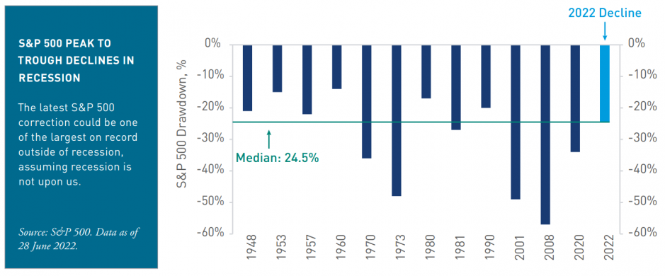 Rückgang des S&P 500 Index während der letzten 12 Rezessionen 24,5 %, so