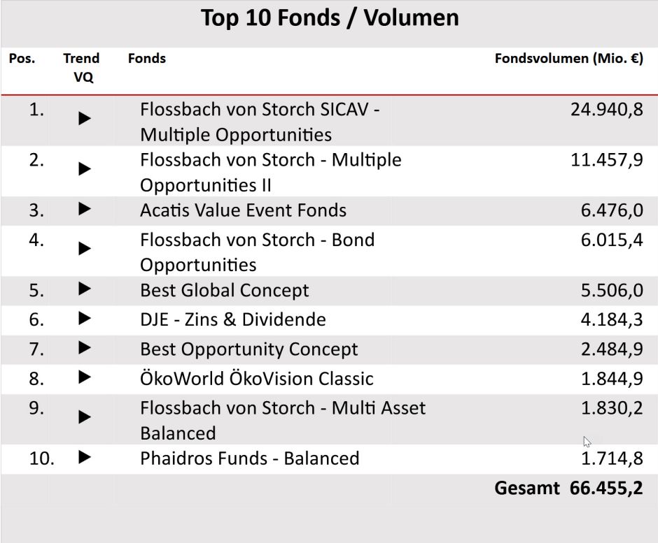 Die Top-10-Fonds der deutschen Fondsboutiquen zeigen sichauch 2024 als verlässliche Stützen des Marktes. Ihr Gesamtvolumen konnte im Vergleich zum Vorjahr von 65,1 Milliarden Euro auf 66,4 Milliarden Euro gesteigert werden, was einem Zuwachs von 2 Prozent entspricht. Mit einem Marktanteil von 42,7 Prozent am Gesamtvolumen der Fondsboutiquen unterstreichen diese Fonds ihre zentrale Bedeutung für die Branche. Die Rangliste bleibt weitgehend stabil, angeführt vom Flossbach von Storch SICAV – Multiple Opportunities mit einem Volumen von 24,9 Milliarden Euro. Erfreulich ist die Entwicklung des DJE – Zins & Dividende, der die Marke von 4 Milliarden Euro überschreiten konnte. Trotz der herausfordernden Marktbedingungen gelingt es den Top-10-Fonds, ihr Gewicht im Markt zu behaupten und ihre Stellung als zentrale Ankerpunkte für Anleger zu festigen.