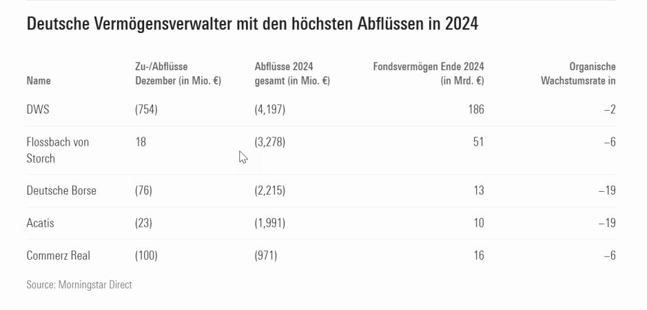 Mit großem Abstand folgt Union Investment mit einem Plus von 10,2 Mrd. EUR und damit etwas weniger als 2023 (10,5 Milliarden Euro). Verbessern konnte sich indes die Deka mit 7,3 Milliarden Euro an Netto-Neugeldern. Der Vermögensverwalter der Sparkassengruppe war 2023 auf gerade einmal 2,7 Milliarden Euro gekommen.