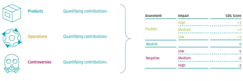 Das SDG Framework verwendet eine dreistufige Methodik zur Quantifizierung der Beiträge von Unternehmen – positiven wie negativen – zu den 17 Nachhaltigkeitszielen. Die SDGs reichen von der Beseitigung des Hungers und der Ungleichheit bis hin zur Bekämpfung des Klimawandels und der Förderung einer nachhaltigen Industrie. Sie werden als Leitlinie von Investoren genutzt, die Kapital zugunsten von Unternehmen umschichten wollen, die Lösungen für soziale Probleme anbieten, und Firmen meiden wollen, die sich negativ auf Umwelt und Gesellschaft auswirken.