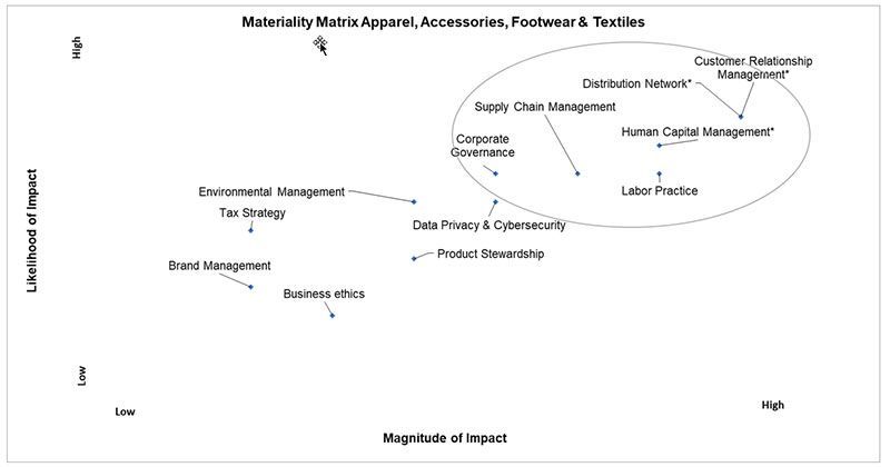 Im Rahmen unseres Investment-Research legen wir den Fokus auf die Analyse der jeweils relevantesten Aspekte in jeder Branche. Im Bekleidungssegment haben wir festgestellt, dass die Arbeitsbedingungen und das Lieferketten-Management zwei der sechs wesentlichsten Probleme sind.