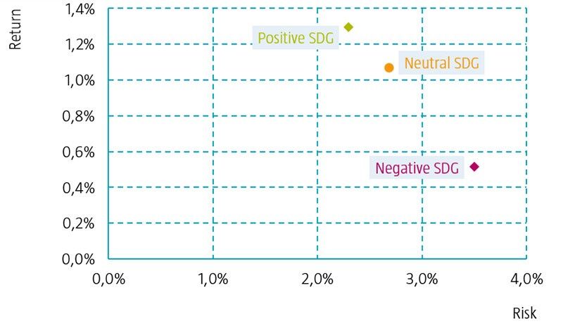 Robeco hat im Jahr 2018 einen speziellen Filteransatz unter Bezugnahme auf die UN-Nachhaltigkeitsziele (UN Sustainable Development Goals – SDGs) entwickelt, der bei verschiedenen Strategien von Robeco angewendet wird. Letztes Jahr zeigte eine erste Analyse, dass Sektoren mit positiver Ausrichtung auf die SDGs ein geringeres Bonitätsrisiko aufweisen und dass auf Sicht von fünf Jahren Sektoren mit positivem oder neutralem SDG-Rating über eine bessere Risiko/Ertrags-Relation verfügen als solche mit negativen SDG-Scores.