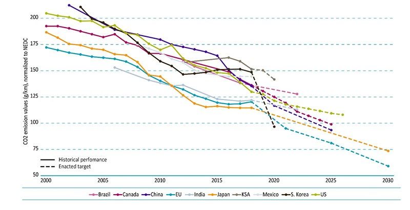 Europäische Regulierungsbehörden setzen hier globale Standards; denn ihre Vorschriften enthalten nicht nur strenge Emissionsvorgaben, sondern sehen auch Strafen für Autohersteller vor, die diese nicht einhalten. Diese Strafen sind für Autohersteller ein wichtiger Anreiz, Ressourcen für Forschung und Entwicklung sowie Investitionen bereitzustellen.