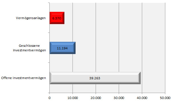 Von den knapp 40.000 Beratern und Vermittler haben 39.263 die Erlaubnis zur Vermittlung von offenen Investmentvermögen. 11.194 dürfen geschlossene Investmentvermögen vermitteln und 6.370 ließen sich für Vermögensanlagen registrieren. Da jeder Antragsteller die Erlaubnis für mehrere Kategorien beantragen kann, fließen hier Mehrfachzählungen ein.