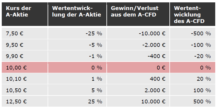 Das Prinzip: Anleger können mithilfe von CFDs mit minimalem Kapital-Einsatz große Geldsummen bewegen. Die Papiere funktionieren nach einem scheinbar einfachen Prinzip: Mit jedem Cent, den der jeweilige Basiswert, also beispielsweise eine Aktie oder ein Währungspaar, steigt oder fällt, steigt oder fällt auch der Wert des dazu passenden CFDs um einen Cent. Die Hebelwirkung entsteht dadurch, dass ein CFD nur einen Bruchteil des Preises des jeweiligen Basiswertes kostet. Die Funktionsweise ist also vergleichbar mit klassischen Hebelzertifikaten.