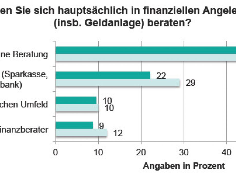 Schlechte Nachrichten für Anlageberater bei Banken: Immer weniger junge, gut ausgebildete Verbraucher in Deutschland lassen sich bei der Geldanlage von Experten beraten. Das ist das Ergebnis einer Studie des Deutschen Instituts für Portfolio-Strategien an der FOM Hochschule. 60 Prozent der sogenannten „Young Professionals“ gaben darin an, selbständig zu entscheiden, in welche Finanzprodukte sie investieren. Zum Vergleich: Im Vorjahr sagten dies 49 Prozent. Von einem Berater der Hausbank lassen sich lediglich 22 Prozent der Befragten beraten – sieben Prozent weniger als 2013. Die Expertise eines unabhängigen Finanzberaters nutzen gerade einmal neun Prozent der 651 Young Professionals.