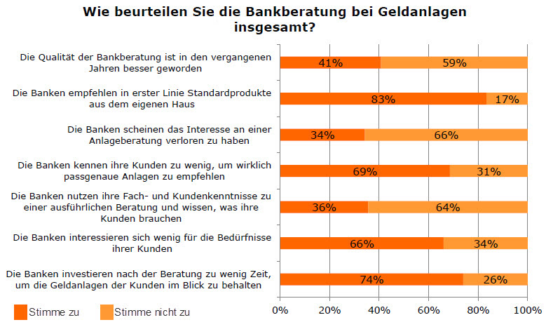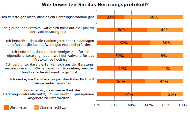 Umfrage zeigt, dass Beratungsprotokolle die Bankberatung nicht verbessert haben. Folgeberatungsprozess fehlt.