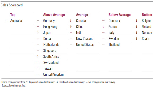 Ein Ergebnis der Studie dürfte die Vertriebe besonders freuen: Deutschland schneidet in der Kategorie ‚Vertrieb‘ überdurchschnittlich gut ab. Leider gibt es auch hier einen Schönheitsfehler: Laut Studie werden weniger als die Hälfte der vertriebenen Fonds unter Berücksichtigung von Fremdfonds angeboten. Die Bevorzugung hauseigener Fonds ist nach wie vor eine Unsitte im Vertrieb und „nicht zwangsläufig im Interesse der Anleger“, wie Morningstar urteilt.