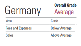 Fondssparer in Deutschland zahlen mehr für ihre Fonds als der Durchschnitt der Anleger weltweit. Besonders teuer sind Aktienfonds, die in Deutschland zum Vertrieb zugelassen, aber nicht hierzulande domiziliert sind. Asymmetrische Erfolgsgebühren (also Gebühren auf die Outperformance, ohne im Gegenzug eine Reduktion bei Underperformance zu gewähren) sind, wie in vielen anderen Ländern auch, zulässig. Immerhin hat sich jedoch die Gestaltung der Erfolgsgebühren durch die 2013 eingeführten Vorgaben der BaFin insgesamt verbessert. Die Beratung erfolgt in der Regel provisionsbasiert. Fonds ohne Vertriebsprovision sind selten. Darin unterscheidet sich Deutschland nicht von den meisten anderen Ländern.