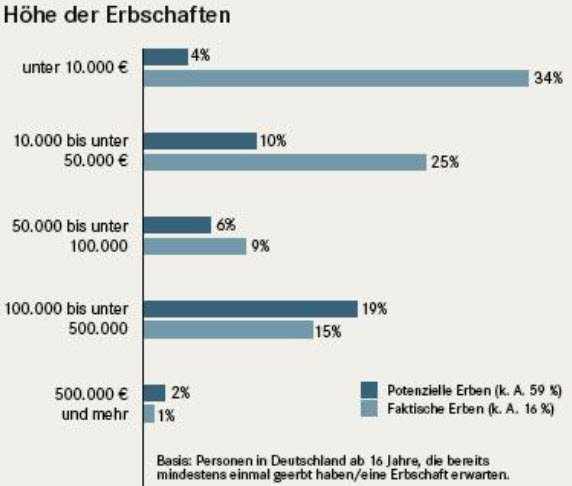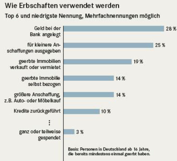 Mehrheit der Menschen befasst sich mit Erbschaften. Anlage bei der Bank ist häufigste Verwendung. Nur jeder vierte Erbe lässt sich professionell beraten.