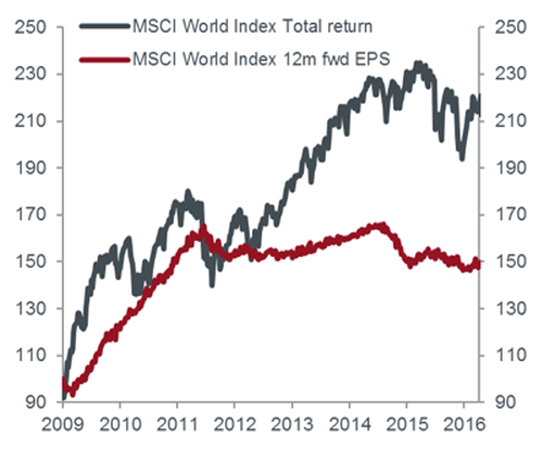 Source: Datastream as at December 2016. Indexed to 100 at March 2009. Past performance is not a guide to future performance. Fwd EPS = forward price-to-earnings, a measure of the price-to-earnings ratio using forecasted earnings.